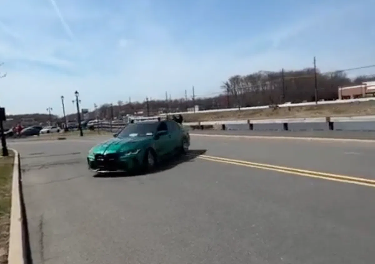 Terug naar de driftschool. De stoeprand is genadeloos voor deze BMW M3.